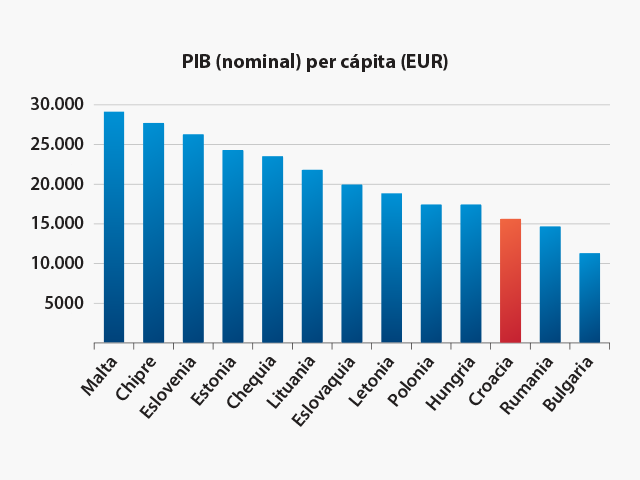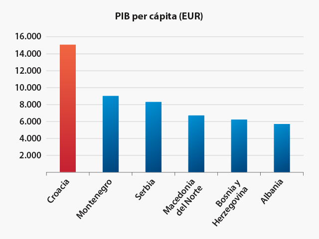 La economía croata es una de las más fuertes del Sudeste de Europa según su Producto Interior Bruto (58,2 mil millones de euros en 2021). Después del colapso del sistema socialista pasó por la transición a la economía de mercado abierta, lo que se refiere especialmente a la producción industrial.