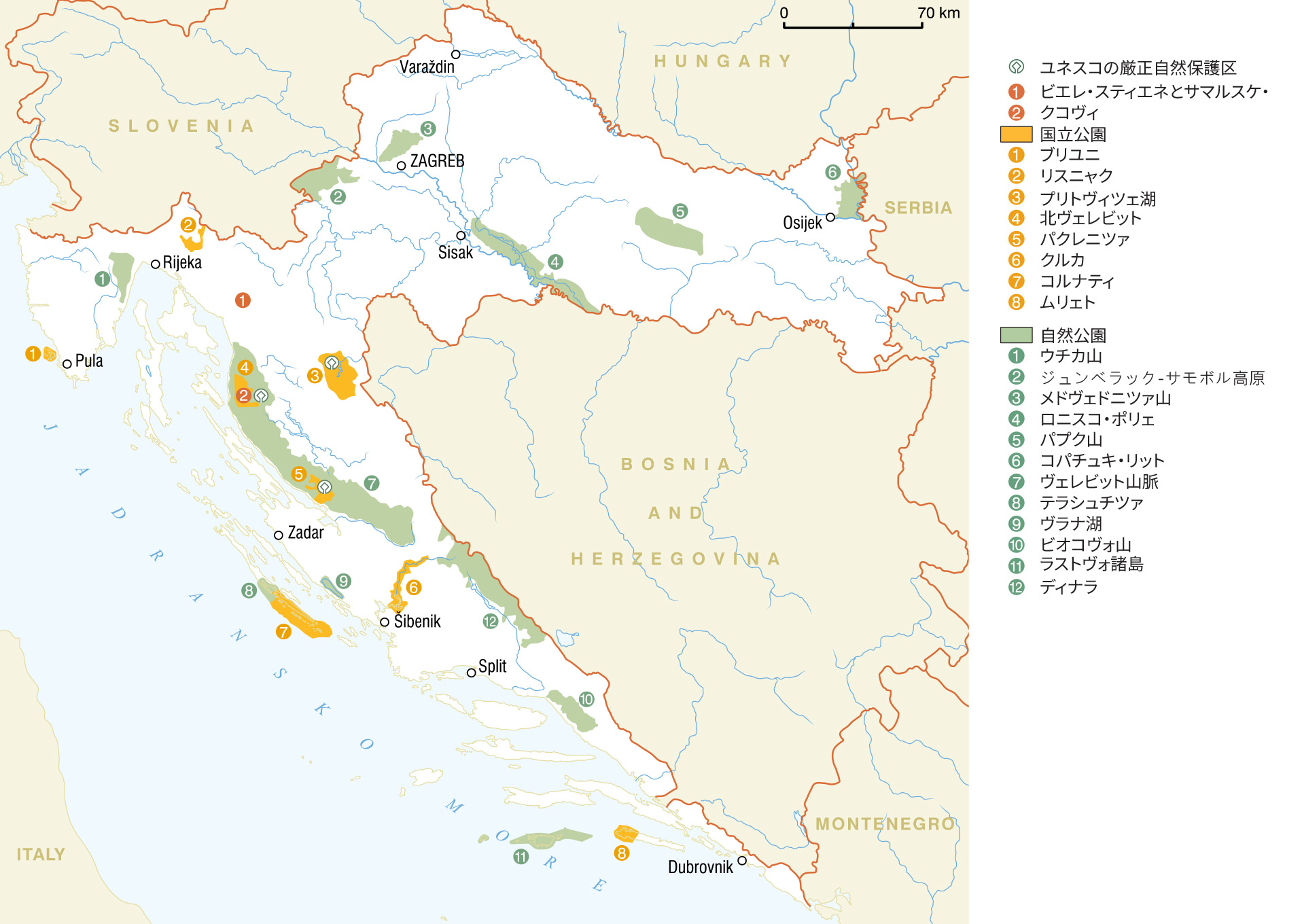 多くの自然保護地域と、希少かつ多様で比較的保存状態の良い自然の姿から、クロアチアは自然の見どころに恵まれた国であることがわかる。その中にはプリトヴィツェ湖のように世界的にも有名なものもある。