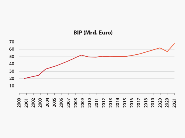 Die meisten Arbeitnehmer sind in der verarbeitenden Industrie, öffentlicher Verwaltung und Bildung, im Handel sowie im Gesundheitswesen und im Tourismus tätig. Die Arbeitslosigkeit lag im Dezember 2021 bei 6 Prozent.