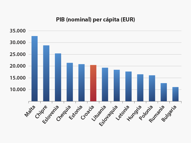 La economía croata es una de las más fuertes del Sudeste de Europa según su Producto Interior Bruto (58,2 mil millones de euros en 2021). Después del colapso del sistema socialista pasó por la transición a la economía de mercado abierta, lo que se refiere especialmente a la producción industrial.