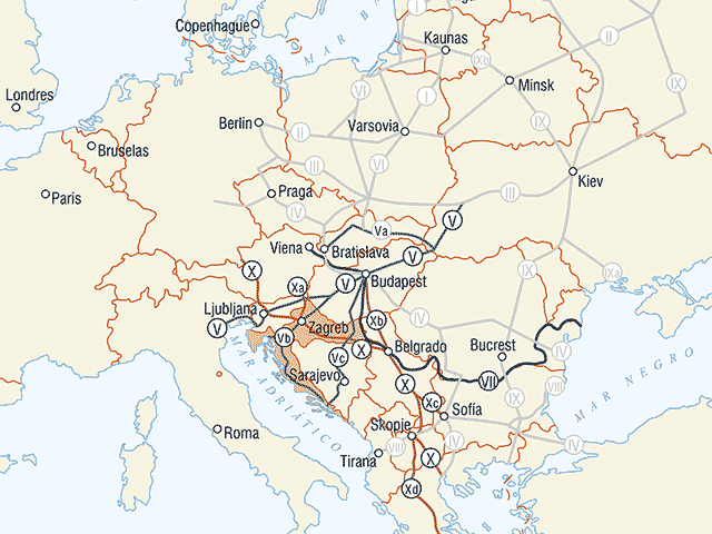 Como un país adriático y centroeuropeo, pero también de la cuenca del Danubio, Croacia tiene una favorable posición geográfica y de transporte. Varios corredores de tránsito paneuropeos y sus ramas pasan por Croacia, definidos en la Conferencia Ministerial de Helsinki en 1997: el Corredor X comunica Europa Central con el Próximo Oriente y las ramas del Corredor V comunican el norte y el sur de Europa con los puertos croatas.