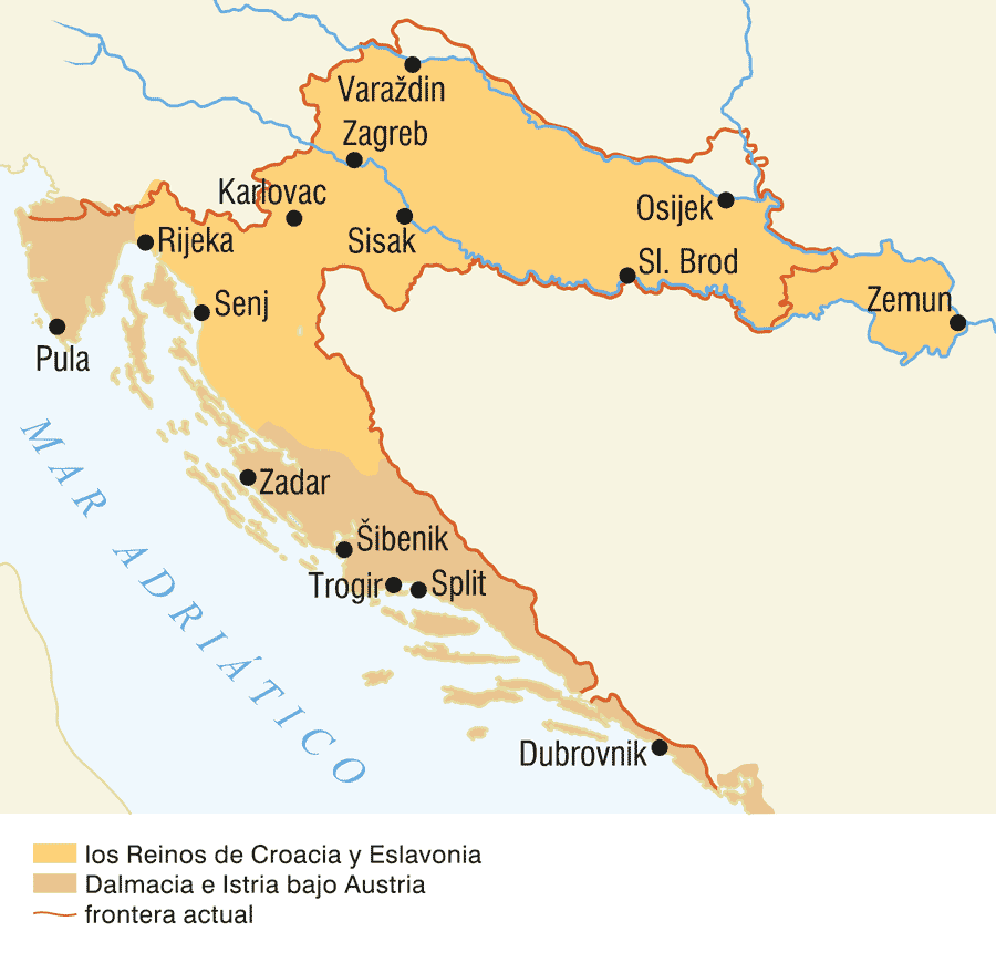 Durante el siglo XVIII Croacia fue dividida entre la Monarquía de los Habsburgo y la República de Venecia. Además, Croacia y Eslavonia, en el marco de las tierras austríacas, estaban divididas en Croacia gobernada por ban, administrativamente bajo la parte húngara de la Monarquía, y el Confín Militar (Vojna Krajina), bajo la administración directa de Viena. La zona bajo el dominio veneciano estaba dividida en las provincias de Dalmacia e Istria.