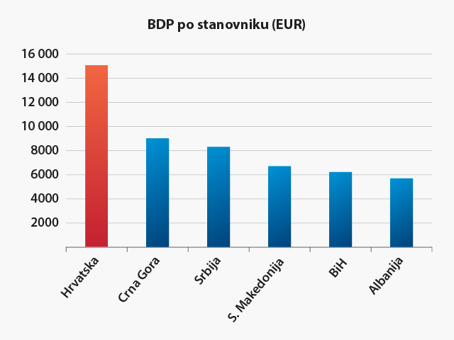 Hrvatsko gospodarstvo prema bruto domaćemu proizvodu (58,4 milijarde eura 2021) jedno je od najjačih u jugoistočnoj Europi i jače od gospodarstva nekih članica Europske unije. Nakon sloma socijalističkoga sustava prolazi tranziciju prema otvorenom tržišnomu gospodarstvu, što se posebice odnosi na industrijsku proizvodnju.