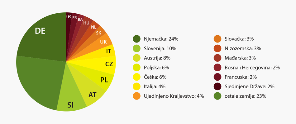 Od 1980. do danas udio stranih turista znatno je veći od domaćih, a tradicionalni su turisti iz Njemačke, Slovenije (prije domaći turisti), Austrije, Italije, Češke i Slovačke (nekadašnje Čehoslovačke). U posljednjih je desetak godina povećan broj turista iz Poljske, Nizozemske, Ujedinjenoga Kraljevstva, Mađarske, Francuske, ali i prekomorskih zemalja.